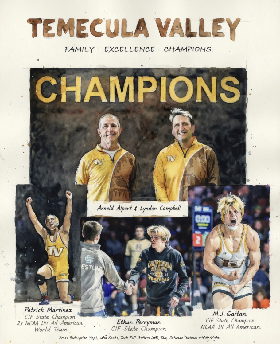 Wrestling at Temecula Valley wasn’t just passed down—it was lived. Ronnie and Dan Long set the tone. The Flores brothers carried it forward. The Mendozas, the Bristols, the Navaretes—names that didn’t just appear, but reappeared. The Meridiths turned it into a trio of state competitors. Perryman became a multi-year standout. The Gaitans established a lineage that continues today.